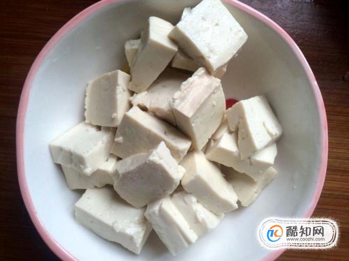 豆腐買回后,浸泡到水里。煮湯前將豆腐表面清洗,切成小塊。
