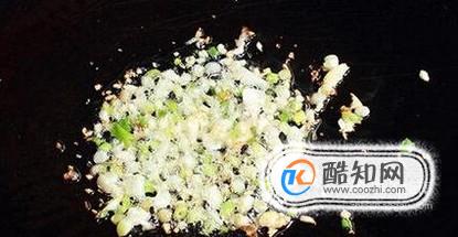 接著鍋內倒入油,加熱,倒入蔥末和蒜末、姜末,翻炒至飄出香味。