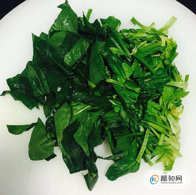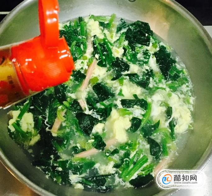 工具/材料菠菜,雞蛋,方火腿,蔥,花生油,鹽,香油,水等等 操作方法