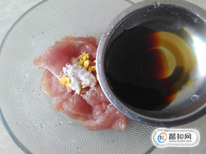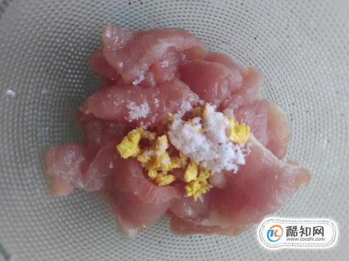 把瘦肉切成片,加適量的鹽、姜蓉。