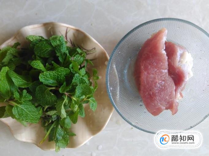 薄荷50克,瘦肉70克,姜蓉適量,生抽1勺,料酒1勺。