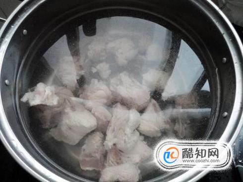 排骨取出,洗干凈,剁成塊備用,鍋中倒入適量水,煮開了倒入排骨焯水
