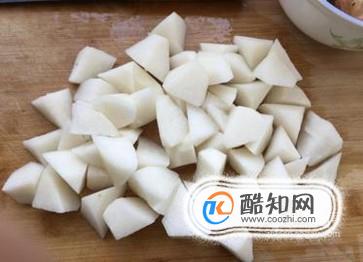 在等待的同時,咱們把白蘿卜去皮切成塊狀。