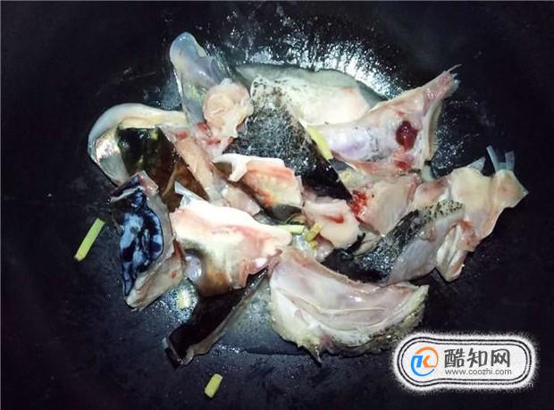 魚頭兩面都翻炒一下,大概翻炒2分鐘即可,然后加入適量的清水。