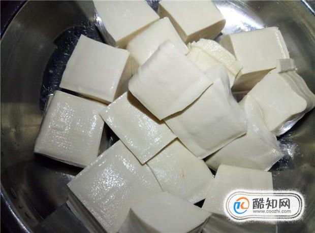 豆腐切成小塊,加入鍋中,大火煮。