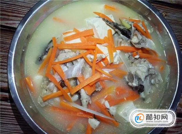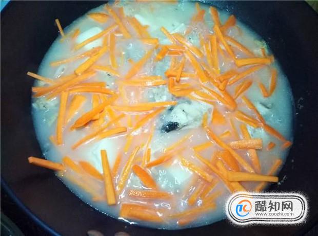 等到魚頭湯變成乳白色,加入胡蘿卜絲,把胡蘿卜絲煮軟即可。摘自: www.ws46.com