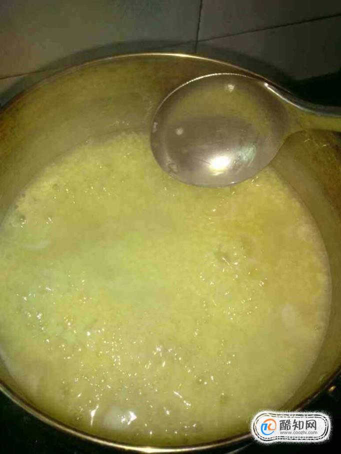 然后小米粥會越來越粘稠,所以我們一定要不停的攪拌,這樣子小米粥就會變濃稠而且不容易糊鍋。