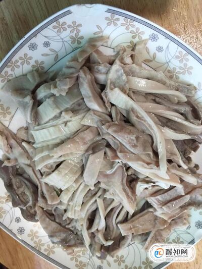 首先我們需要用清水把豬肚洗凈,豬肚比較臟要多清洗幾遍,然后放入鍋里面焯水,切絲備用,為了去除腥味我們可以加入一些姜片。