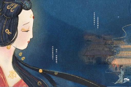 貴妃頭上的飾品丟棄在地上無人收拾,首飾金雀釵玉簪珍貴頭飾一根根。 皇帝欲救不能掩面而泣,回頭看到貴妃慘死的場景血淚止不住地流。 風(fēng)刮起黃塵格外蕭索,回環(huán)曲折穿棧道車隊踏上了劍閣古道。 峨眉山下行人稀少,旌旗無色日月無光。 蜀地山清水秀,引得君王相思情。 在行宮看見月色就傷心,夜里聽到鈴聲就斷腸痛苦。 時局好轉(zhuǎn)皇帝重返長安,路過馬嵬坡睹物思人徘徊不前。 馬嵬坡下荒涼黃冢中,佳人容顏再不見唯有墳塋躺山間。 君臣相顧淚濕衣衫,向東望無心鞭馬任由馬前進回京城。 回來一看池苑的地方依舊,太液池邊芙蓉仍在未央宮中垂柳未改。 芙蓉開得像玉環(huán)的臉柳葉兒好似她的眉,此情此景如何不傷心落淚。 春風(fēng)吹開桃李花物是人非不勝悲,秋雨滴落梧桐葉場面寂寞更慘凄。 興慶宮和甘露殿秋草叢生,落葉滿臺階長久不見人打掃。 梨園歌舞藝人頭發(fā)已雪白,椒房侍從宮女紅顏盡褪。 晚上宮殿中流螢飛舞玄宗悄然思念貴妃,孤燈油盡仍難以入睡。 遲緩的鐘鼓聲愈數(shù)愈覺夜漫長,星河泛白天快要亮了。 鴛鴦瓦上霜花重生,冰冷的翡翠被里誰與君王同眠? 陰陽相隔已經(jīng)一年,為何你從未在我夢里來過? 有個從臨邛來長安的道士,據(jù)說他能用精誠招來貴妃魂魄。 君王思念貴妃的情意令他感動,于是道士盡力去尋找貴妃的魂魄。 騰云駕霧如閃電,上天下地找了個遍。 找遍九天之上尋遍九地之下,卻還是茫茫不見所尋不得。 忽然聽說在海上有一座仙山,這座仙山被云霧環(huán)繞隱隱約約。 華美精巧的樓臺閣被五彩云霞托起,那里面體態(tài)輕盈柔美的仙女?dāng)?shù)之不盡。 當(dāng)中有一個人字太真,肌膚如雪貌似花好像就是君王要找的楊玉環(huán)。 使者來到金闕西邊叩響玉石雕做的院門輕聲呼喚,仙府庭院重重須經(jīng)輾轉(zhuǎn)通報。 太真聽說君王的使者到了,從繡飾華美的帳子里驚醒。 穿上衣服推開枕頭出了睡帳,珠簾與銀飾的屏風(fēng)接連不斷地打開。 半梳著云鬢剛剛睡醒,來不及梳妝歪帶著花冠就出廳堂來了。 輕柔的仙風(fēng)吹拂著衣袖微微飄動,就像當(dāng)年貴妃的霓裳羽衣舞。 寂寞憂愁顏面上淚水長流,猶如春天帶雨的梨花。 含情凝視天子使者托他深深謝君王,馬嵬坡上長別后音訊顏容兩渺茫。 昭陽殿里的姻緣早已隔斷,蓬萊宮中的孤寂時間還很漫長。 從仙境遙望人世間,看不到魂牽夢縈的長安只看到茫茫塵霧。 只有用當(dāng)年的信物表達(dá)我的深情,鈿盒金釵你帶去給君王做紀(jì)念。 把金釵、鈿盒分成兩半,我和君王各自留一半。 但愿我們相愛的心就像黃金寶鈿一樣忠貞堅硬,天上人間總有機會再見。 臨別時殷勤地托使者寄語君王表情思,寄語中的誓言只有君王和我知道。 當(dāng)年七月七日長生殿中,夜半無人我們共起山盟海誓。 在天愿為比翼雙飛鳥,在地愿為并生連理枝。 即使是天長地久也總會有盡頭,但這生死遺恨卻永遠(yuǎn)沒有盡期。 4、《長恨歌》全詩賞析《長恨歌》是白居易詩作中膾炙人口的名篇,作于元和元年(806),當(dāng)時詩人正在盩厔縣(今陜西周至)任縣尉。這首詩是他和友人陳鴻、王質(zhì)夫同游仙游寺,有感于唐玄宗、楊貴妃的故事而創(chuàng)作的。在這首長篇敘事詩里,作者以精煉的語言,優(yōu)美的形象,敘事和抒情結(jié)合的手法,敘述了唐玄 宗、楊貴妃在安史之亂中的愛情悲劇:他們的愛情被自己釀成的叛亂斷送了,正在沒完沒了地吃著這一精神的苦果。唐玄宗、楊貴妃都是歷史上的人物,詩人并不拘泥于歷史,而是借著歷史的一點影子,根據(jù)當(dāng)時人們的傳說,街坊的歌唱,從中蛻化出一個回旋曲折、宛轉(zhuǎn)動人的故事,用回環(huán)往復(fù)、纏綿悱惻的藝術(shù)形式,描摹、歌詠出來。由于詩中的故事、人物都是藝術(shù)化的,是現(xiàn)實中人的復(fù)雜真實的再現(xiàn),所以能夠在歷代讀者的心中漾起陣陣漣漪。