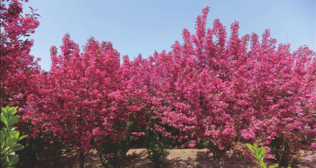 紅麗海棠的介紹: 紅麗海棠,樹冠為圓球狀,葉片呈紅色,果實呈紅色。主要用于觀賞。4月上中旬盛花,花蕾深紅色,初放花朵亮洋紅色,中心色深,芳香,花瓣圓,形似茶花。 花色逐漸變淺,新葉酒紅,枝條高挑,紅色明顯;成熟葉片橄欖綠,健康有光澤,10-11月秋葉紫紅色。