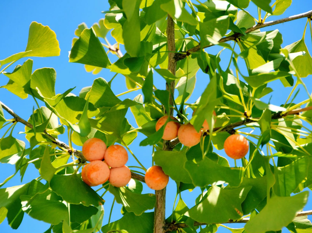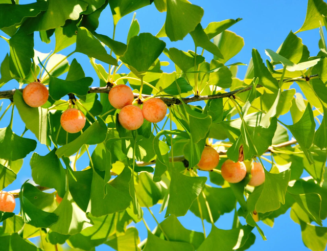 銀杏一般在10月份成熟采收,植株的開花時間為4月,秋季10月開始黃葉、落葉,果柄軟化后果子也隨之脫落,果實呈橢圓形、長倒卵形、卵圓形或近圓球形,外種皮肉質,熟時黃色或橙黃色。