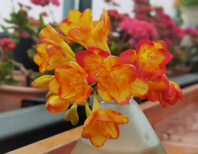香雪蘭的介紹: 香雪蘭屬于百合目鳶尾科植物,球莖為狹卵形或卵圓形;葉子為葉劍形或條形,略微彎曲,黃綠色。 香雪蘭原產于南非及熱帶非洲,中國南方有栽培,北方多盆栽,香雪蘭花色鮮艷、是重要的盆花和切花材料,其花還可用來提取香精。