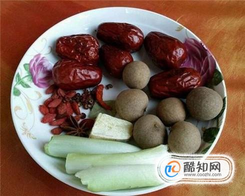 把燉烏雞的材料都準備好,烏雞一個,紅棗、枸杞、姜、黨參、桂圓。材料提前放入水中泡一下。