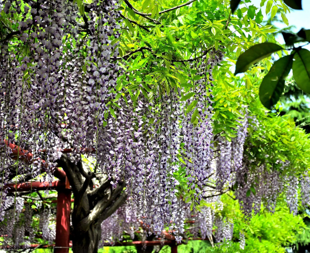 紫藤花樹的介紹: 紫藤花樹是豆科紫藤屬落葉藤本植物,莖左旋;小葉紙質,卵狀橢圓形或卵狀披針形,小托葉刺毛狀;花梗細,花冠紫色,基部有兩枚柱狀胖眠體。 它主要分布于遼寧、陜西、甘肅及華北和長江以南各省區,紫藤作為觀花綠蔭藤本植物。 初夏時紫穗懸垂,花繁而香,盛暑時則濃葉滿架,一般應用于園林棚架、湖畔、池邊、假山、石坊等處。