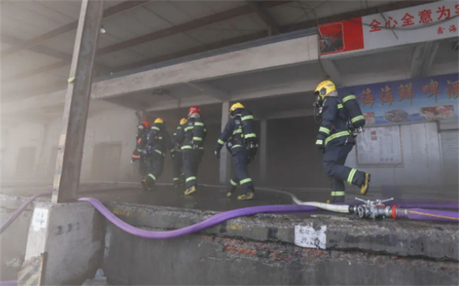 利用設備展開援救 冷庫發生火災后,需要及時使用消防車,可以就近占領水源,達到滅火的效果。利用水罐消防車上的水泡,可通過遠距離發射有效達到冷卻降溫的效果,避免頂部燃燒。當火勢一旦突破外殼,可以直接攻占火點。可通過舉高消防車來有效體現出居高臨下的效果,快速的滅火迅速的尋找到突破外殼的火點,在短時間內就可以防患于未然。