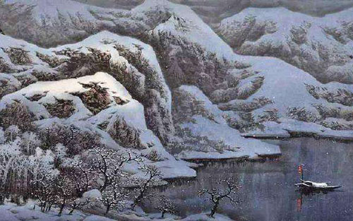 “黃蘆掩映清江下,斜纜著釣魚艖”,出自元代關(guān)漢卿的《大德歌·冬景》。意思是“一條釣魚的小船正斜攬在枯黃蘆葦掩映的清江下。”。![]() 雪粉華,舞梨花,再不見煙村四五家。密灑堪圖畫,看疏林噪晚鴉。黃蘆掩映清江下,斜纜著釣魚艖。 鑒賞: 這支小令描繪了一幅淡雅的傍晚郊野雪景圖,勾畫了飽含著作者無限感慨之情的冬景,曲折地表達了作者向往安寧閑適穩(wěn)定生活的感情,也表現(xiàn)了元代文人儒士的歷世感嘆和興亡之感。全曲用字講究,境界開闊,層次分明,畫面清新淡雅,富于立體感,是描繪景物的好作品,從中可感觸戲曲大家智慧的光芒。 |