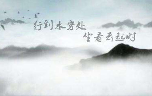 “行在水窮處,坐看云起時”,出自王維的《終南別業(yè)》。意思是”走到水的盡頭已無路可走,不如坐下來看上升的云霧千變?nèi)f化。