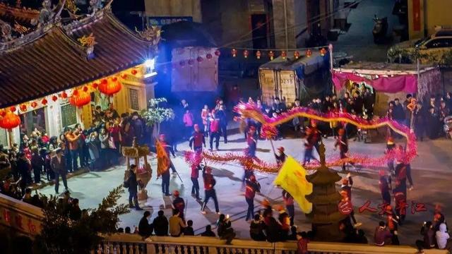 @福人文晉江 晉江東石梅峰村每年元宵連續三晚舉行“游燈”活動,“舞香龍”、“燒火把”、“酒盞燈”、“燒火鼎”等諸多玩火游戲。