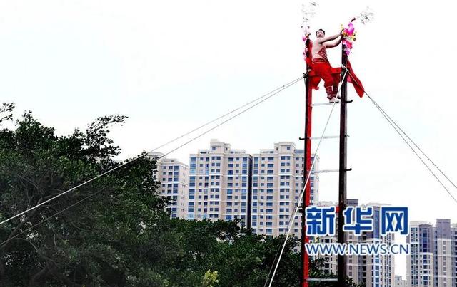 @東南網 莆田爬刀梯可謂驚心動魄,壯漢赤腳,勇登刀梯最頂端,而下來的時候,也是在鋼刀階梯之間穿梭下來。