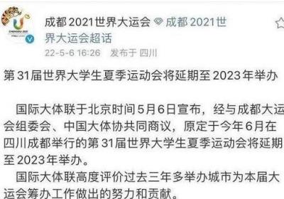 成都大運會2022年幾月幾號舉辦,未取消延期至2023年(原定今年),成都大運會2022年,幾月幾號舉辦,未取消,延期至2023年(原,定今年)...