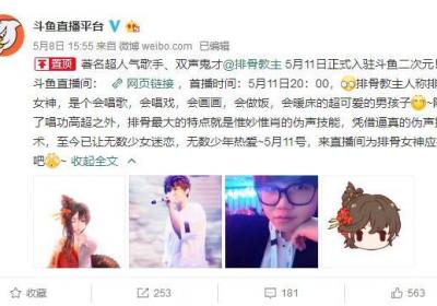 ?今晚8點鎖定斗魚直播間,人氣歌手排骨教主首秀,二次元就看斗魚,?今晚8點鎖定斗魚直,播間,人氣歌手排骨教,主首秀,二次元就看斗,魚...
