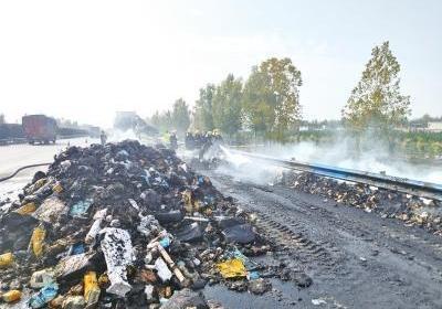 ?高速上滿載13噸貨的快遞車起火 事故具體原因還在調查中,?高速上滿載13噸貨,的快遞車起火 事故具,體原因還在調查中...